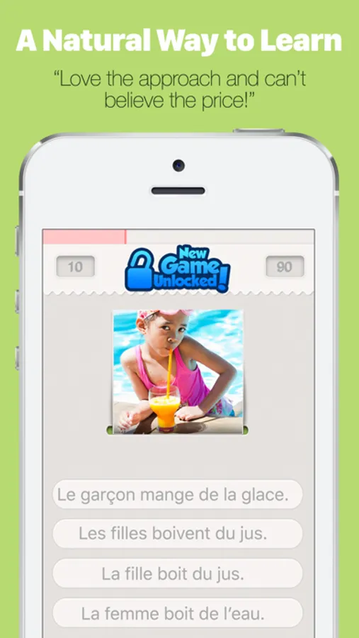 ● A natural approach to language learning. We believe that the best way to learn a language is the way kids effortlessly learn languages in the first place. That is without translation. It is well known that the best way to learn and memorize new information is by creating mental pictures. That's why Learn French with Lingo Arcade comes with carefully prepared levels using gorgeous photos that make learning French fun, easy, and effective.