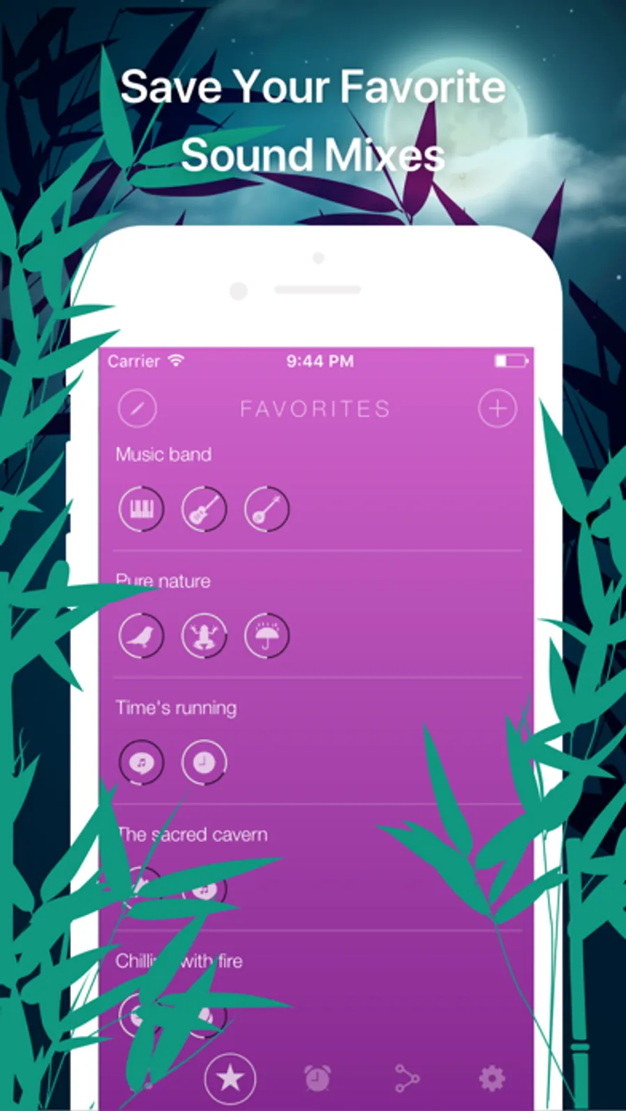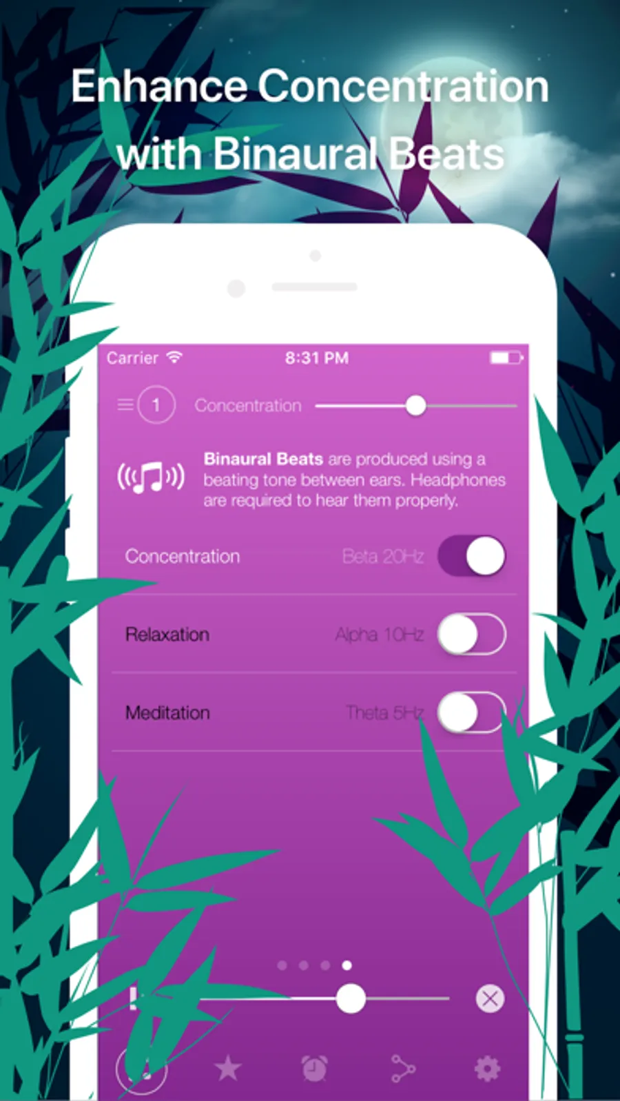 2. Mix and match sounds, creating the right mix for your mood. Add binaural beats to enhance your relaxation.