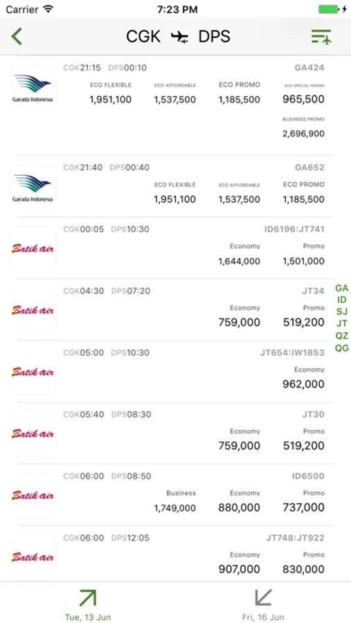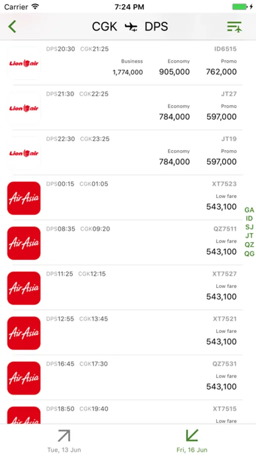 The real simplest DOMESTIC flight search application that you can compare price from major local airlines in Indonesia, quickly and easily from your iPhone/iPad. All available flights are provided in 3 categories; by price, departure time, and by airlines, to maximally facilitate your comparison.