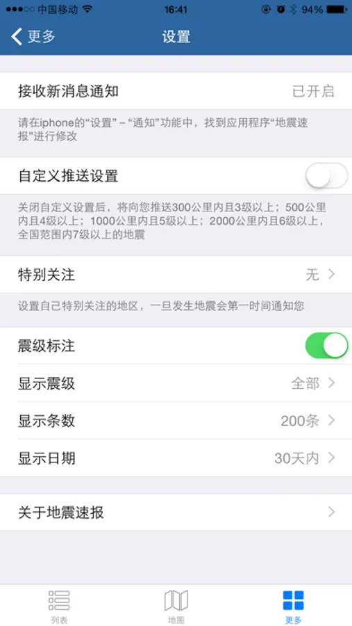 1、根据用户自定义(或系统默认)实时推送国家地震台网发布的最新地震信息;