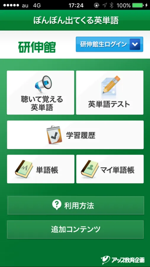 (注意)本アプリは研伸館生用のログインページがあります。校内生には、より充実したプラスαのコンテンツを提供しています。