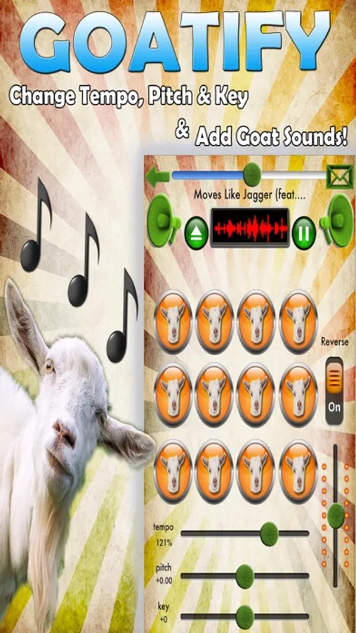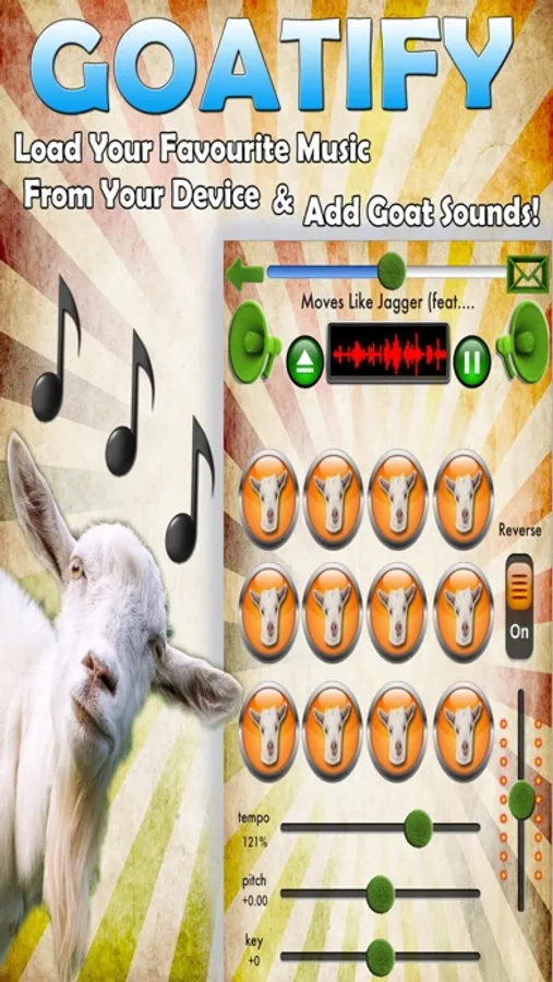 If you prefer to not use the Goat sounds... Then simply use this application as your own personal DJ App! Allowing you to change the Pitch, Tempo & Key of your Music collection on your device!