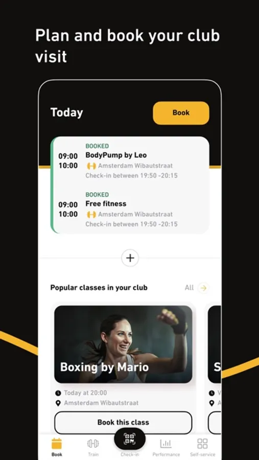 As a club member, you have direct access to the club schedule to book a free fitness timeslot, group lessons, squash, etc. You can easily manage your bookings via your booking overview. In the app, you will also find a variety of workouts and video lessons that you can do at the club and/or at home. This will help you to get started right away! Via your personal performance page, you can track your training efforts.