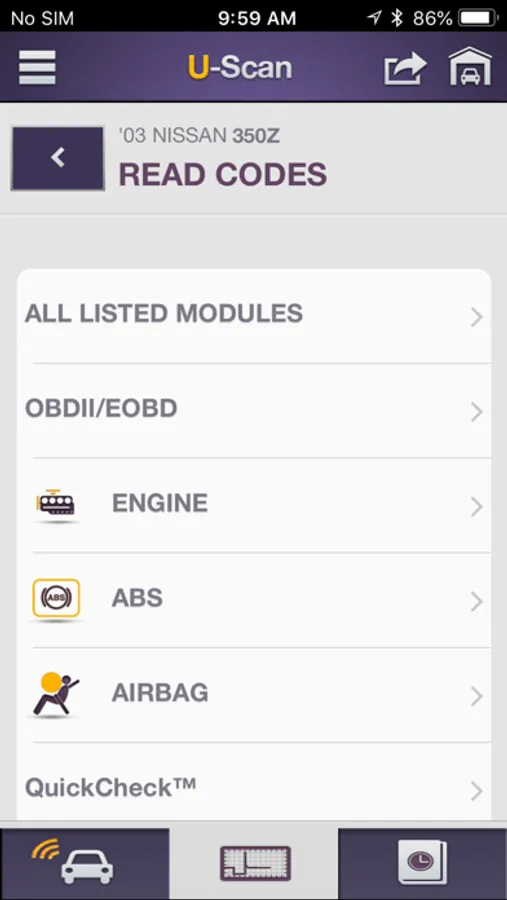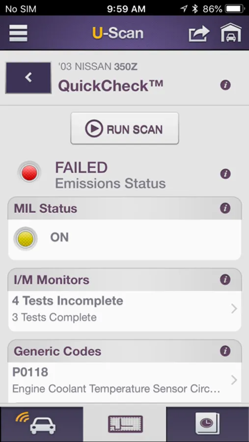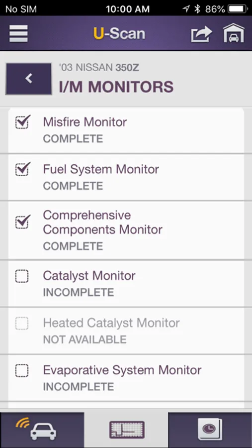 •QuickCheck™ - Review vehicle emissions status (I/M Monitors, Codes).