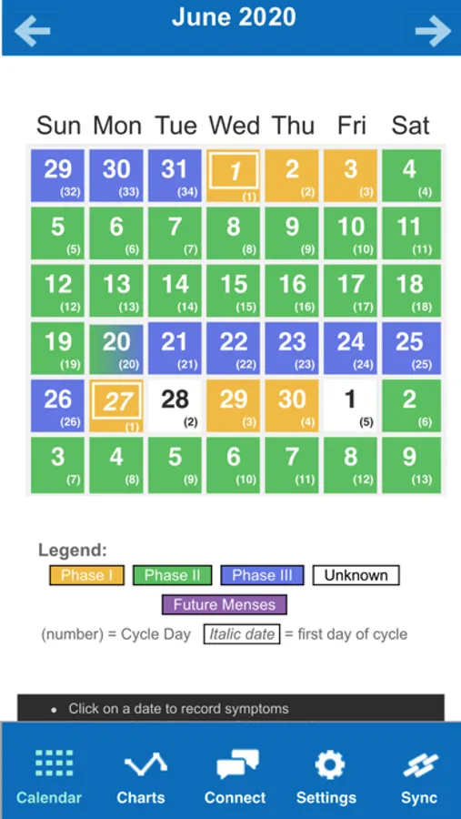 * Push notifications to remind you to record symptoms, alert you of phase changes in your cycle, and more