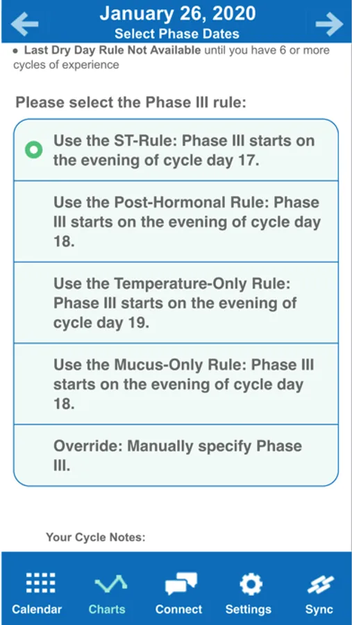 * CCL method analysis to identify the fertile and infertile cycle phases (Phase I, II, and III)
