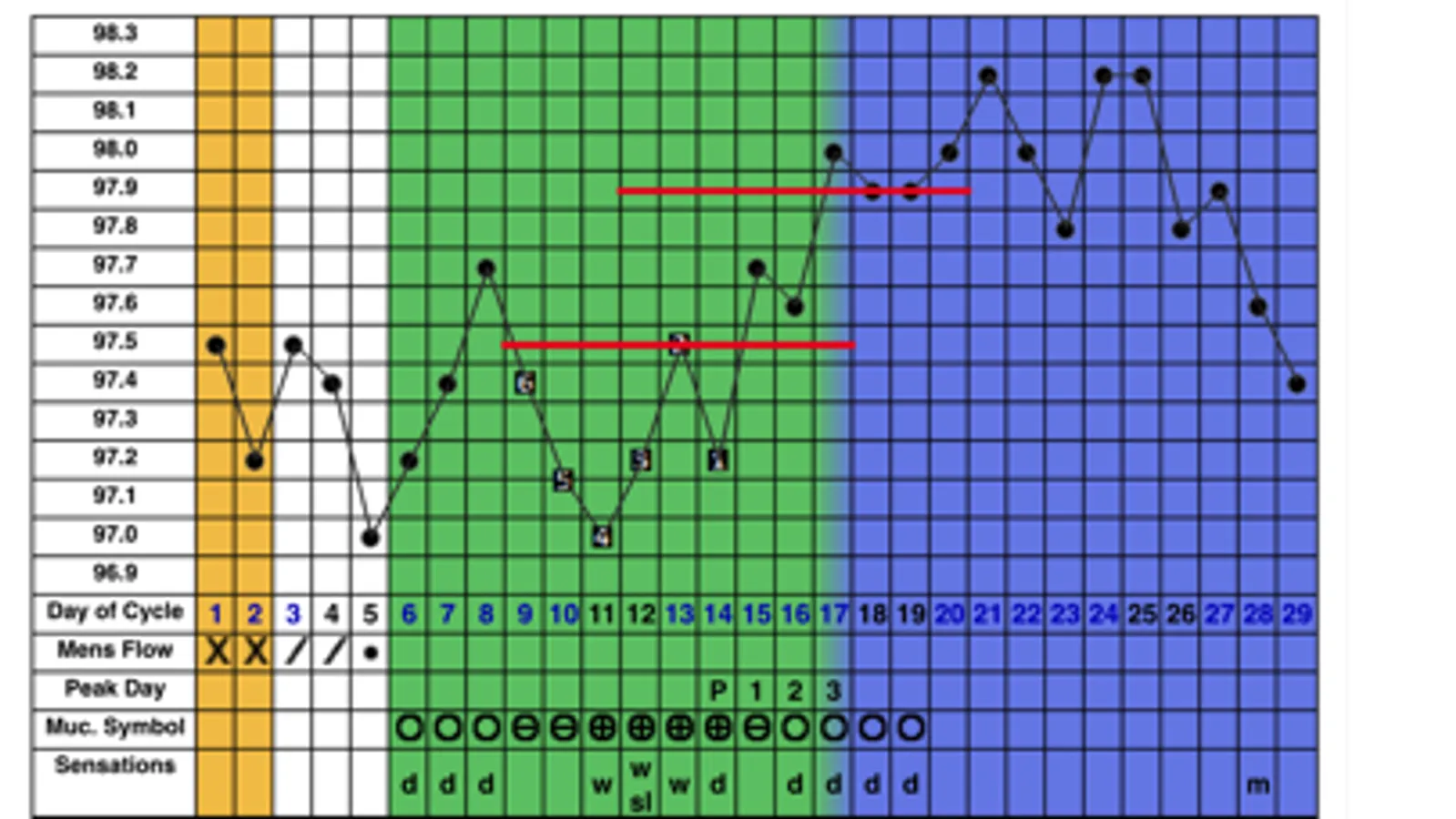 * Recording of fertility signs (mucus, temperature, and cervix)