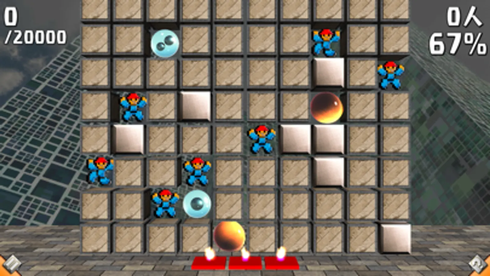 ・ Tap a Wooden Block to set it on fire (flames spread to surrounding blocks). During normal fire power 3, if there are no obstacles, flames spread as shown here.