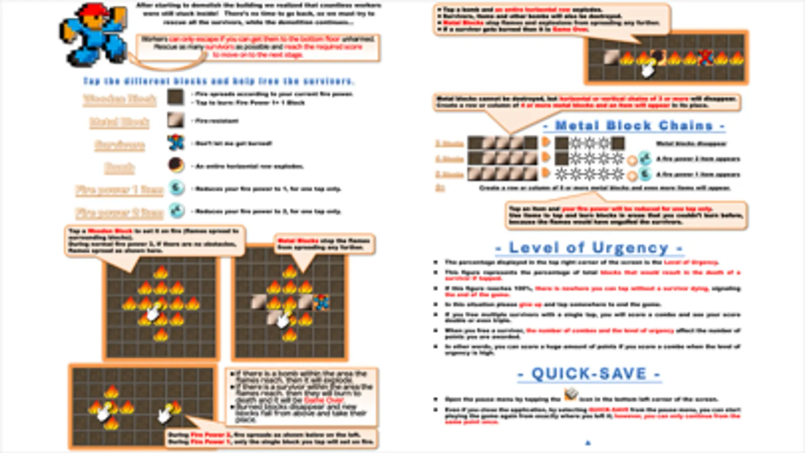・ During Fire Power 1, only the single block you tap will set on fire.