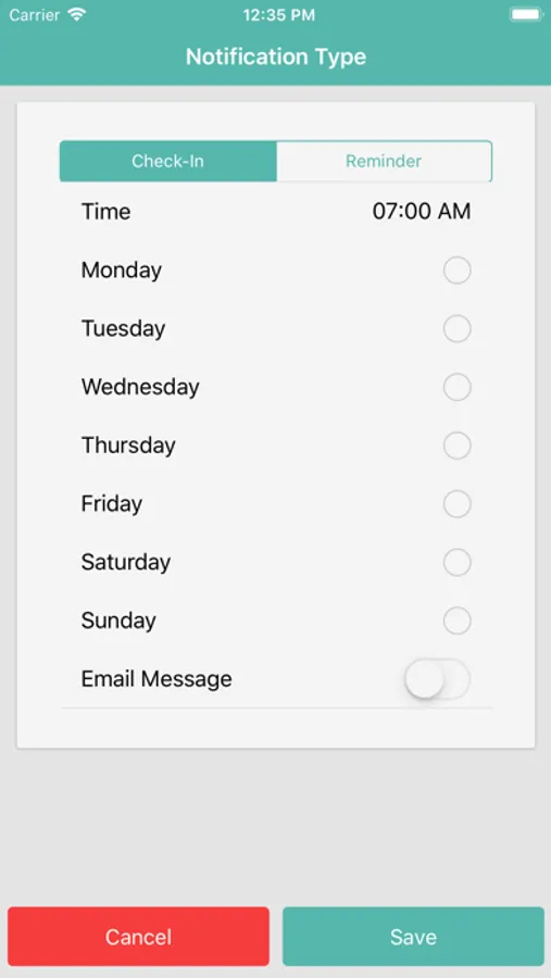 * You can set your own schedule for the app to "check-in". You can set the days of the week, time of day…as many (or as few) as desired. For example, the app can ask if you are ok every hour, only in the mornings/evenings, or every other day.