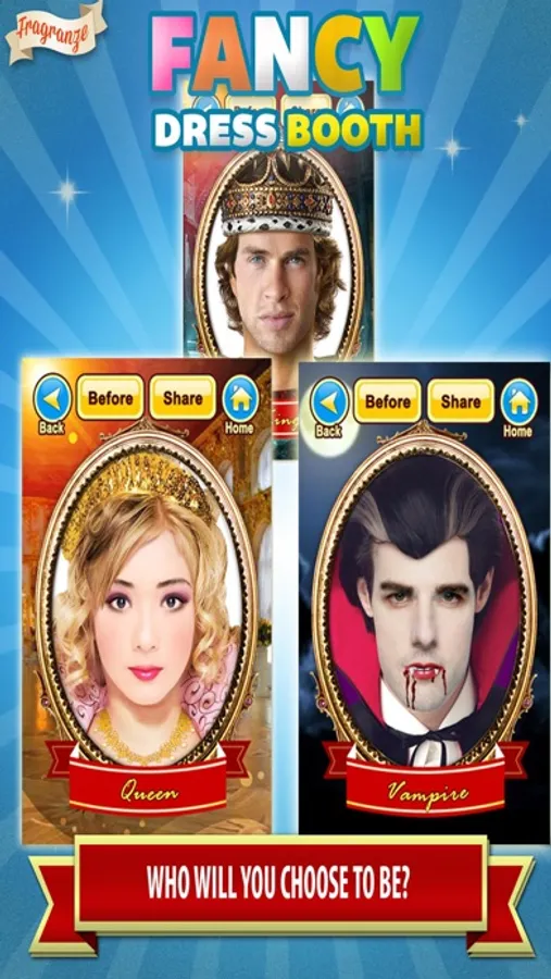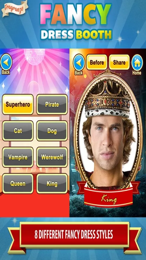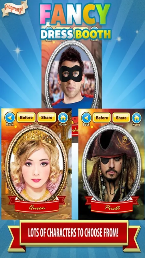 Fancy Dress Booth is the app that allows you to 'dress up' as your favorite fancy dress characters and explore your role play ideas!