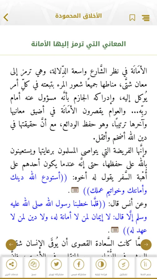 - إمكانية التحكم باختيار حجم الخط ، واختيار وضع القراءة الليلية.
