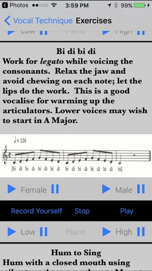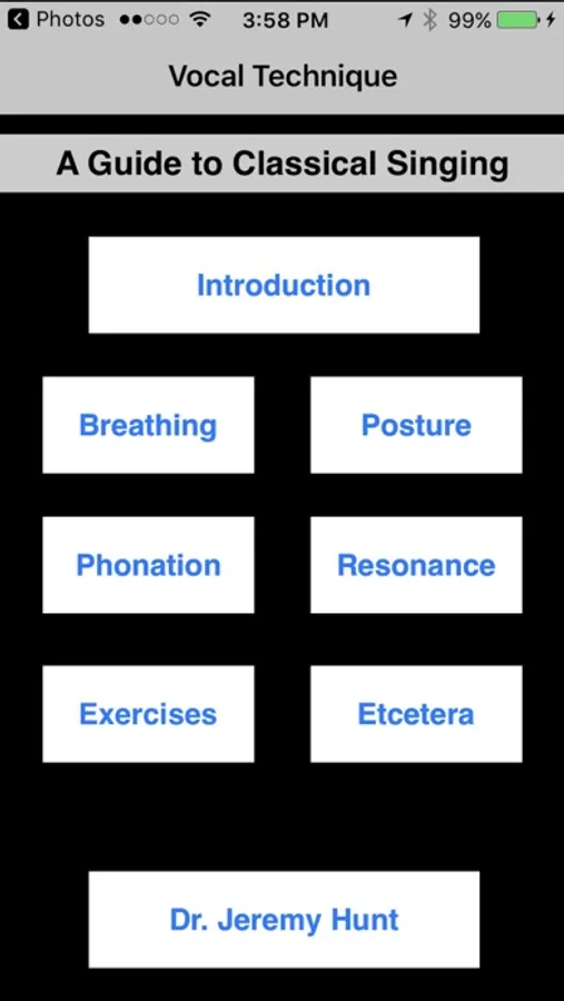 Vocal Tech is an interactive guide to classical singing. It is intended for students of classical vocal music: opera, oratorio, song literature, etc. Any student of singing hoping to build a solid technical foundation can use Vocal Tech. The app discusses Phonation, Resonance, Posture, and Breathing. It includes vocal exercises with recorded examples and a voice recorder for the student, as well as piano accompaniment for exercises. A tenured university professor with a doctorate in voice performance and vocal pedagogy from Indiana University created Vocal Tech.