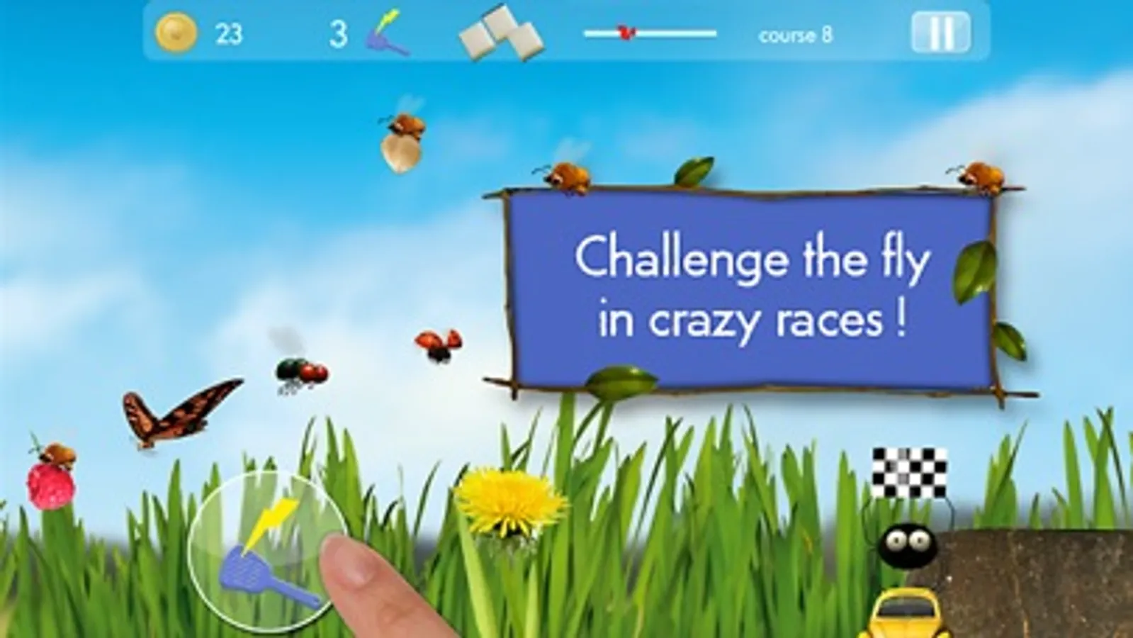 8 locations offer 72 races with new boosters and insects to help you earn coins. Fly through busy worlds filled with Bees, Grasshoppers, Butterflies, Dragonflies and Spiders! Beat your Facebook friends’ scores!