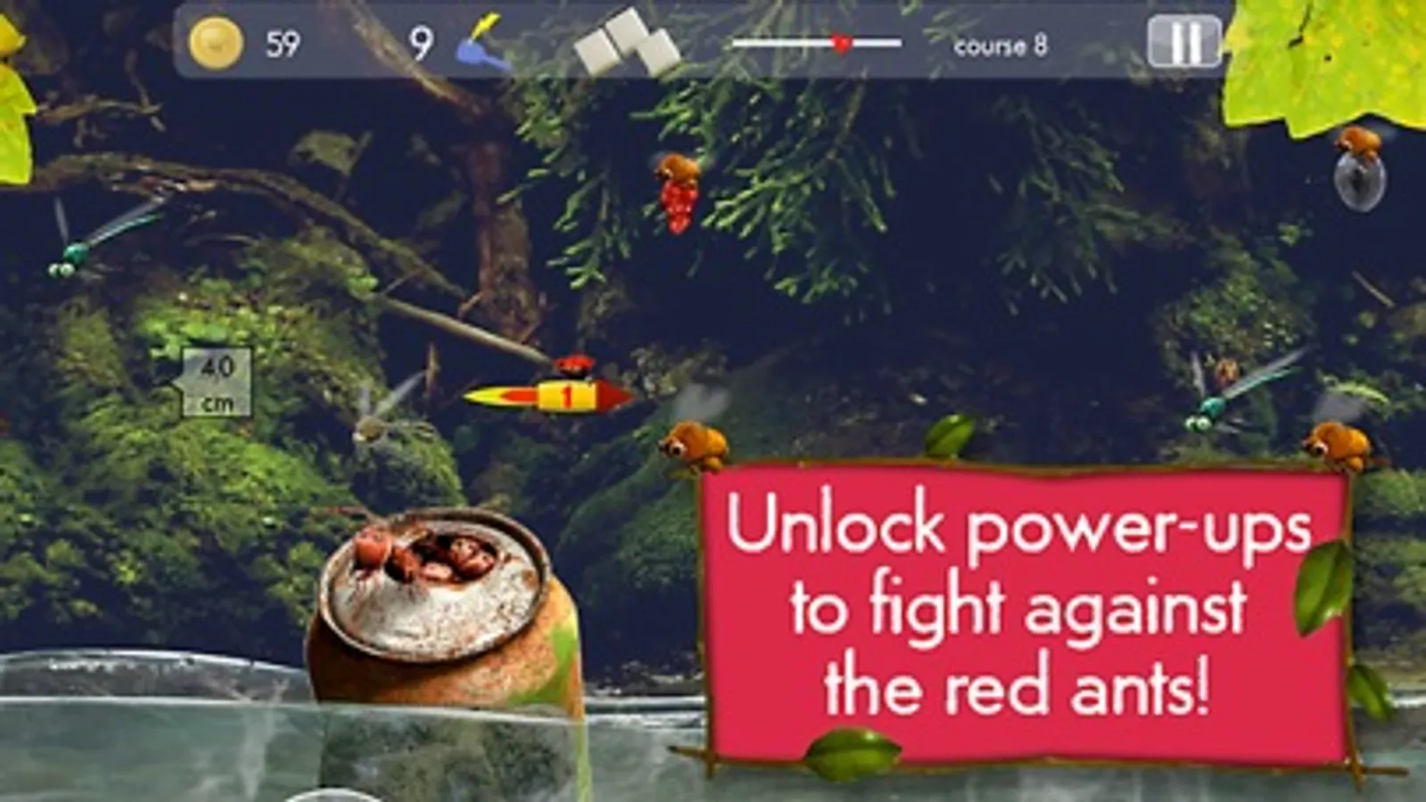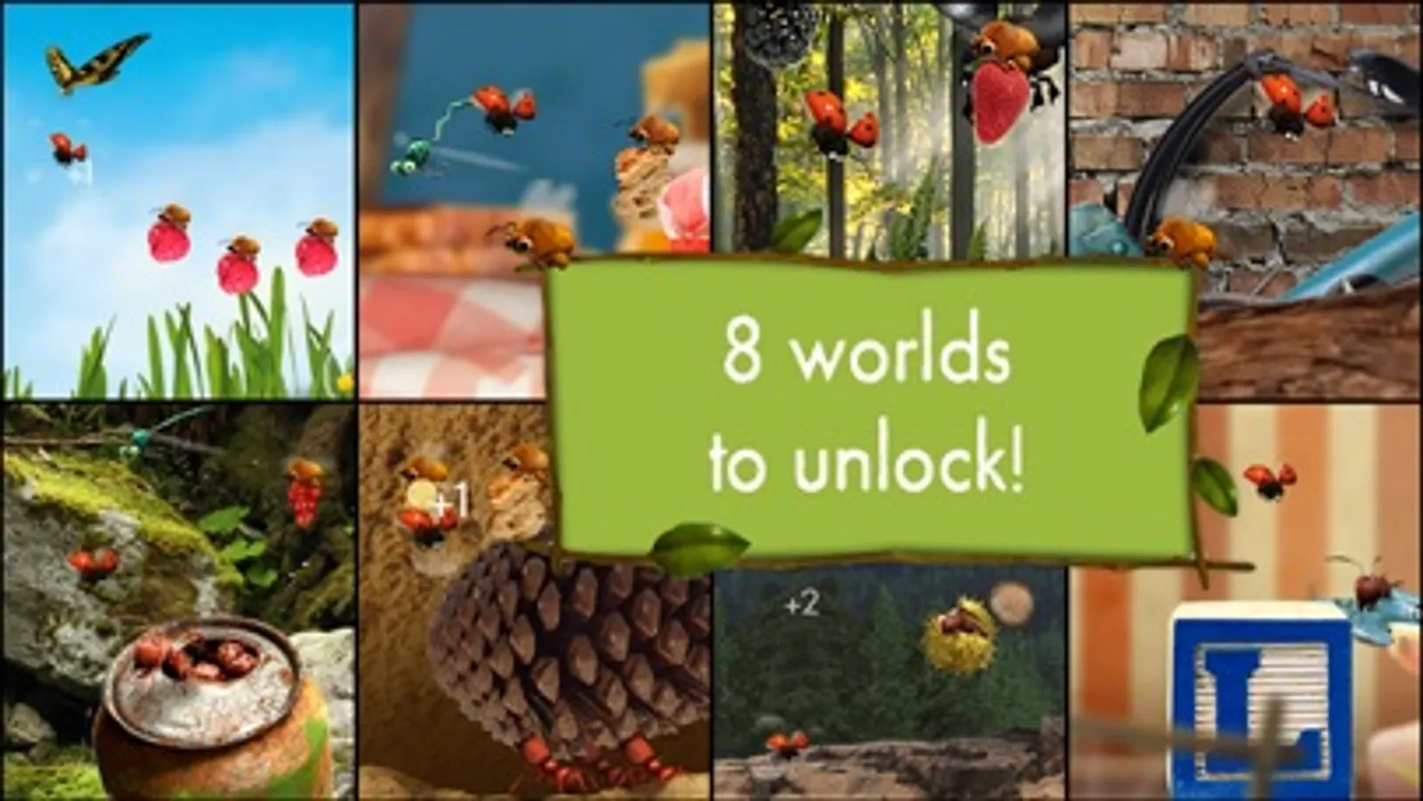 Play with the mischievous Ladybug, an angry Fly, an army of Red Ants and many more interesting insects and take part in crazy races! At each level, you must race and dodge to collect coins and unlock new environments to explore. What tiny wonders will you discover in your travels?