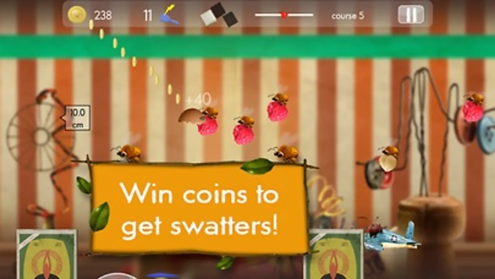 Win coins in races and missions to get more swatters (to stun the fly). It will help you win difficult races!