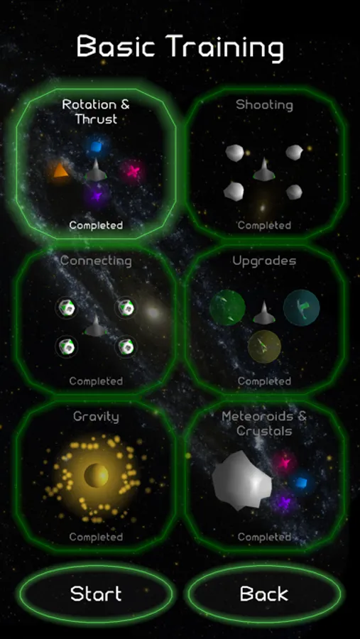 - 3 Upgrades to collect: Enhanced Shield; Extra Thrust; Triple Fire