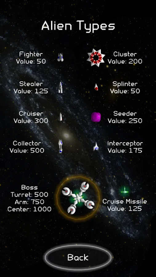 - 10 different Alien types to defeat, including bosses and super-bosses!