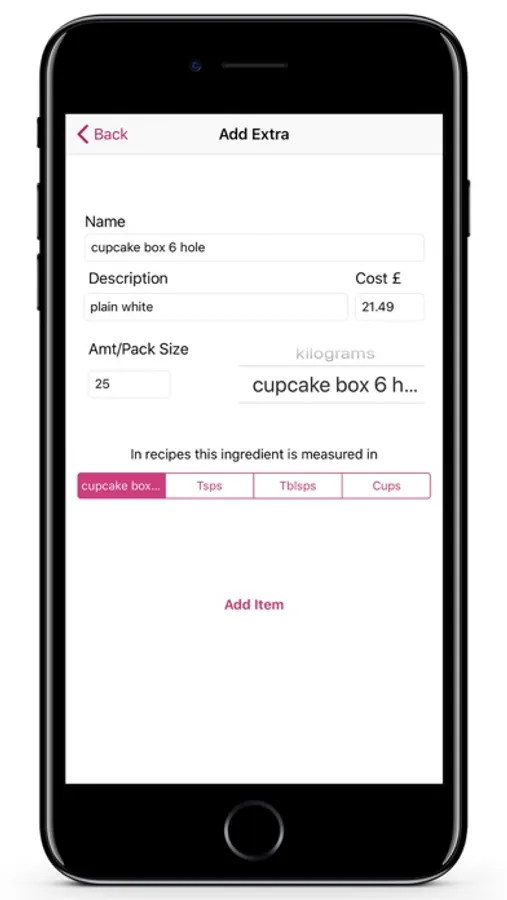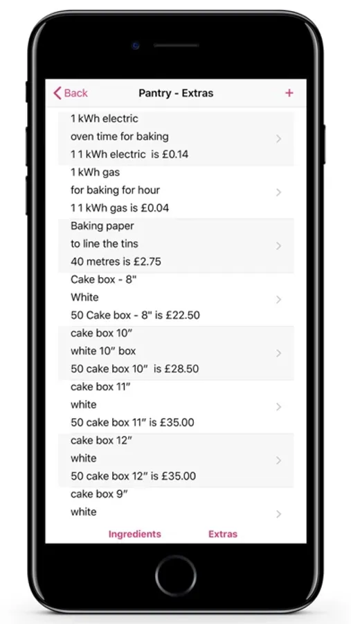 With Cost a Cake Pro you can add any ingredient to your pantry, and you can add any additional item to the extras section, cake boards, cake boxes, ribbon, moulds used, and other such non edible expenditures.