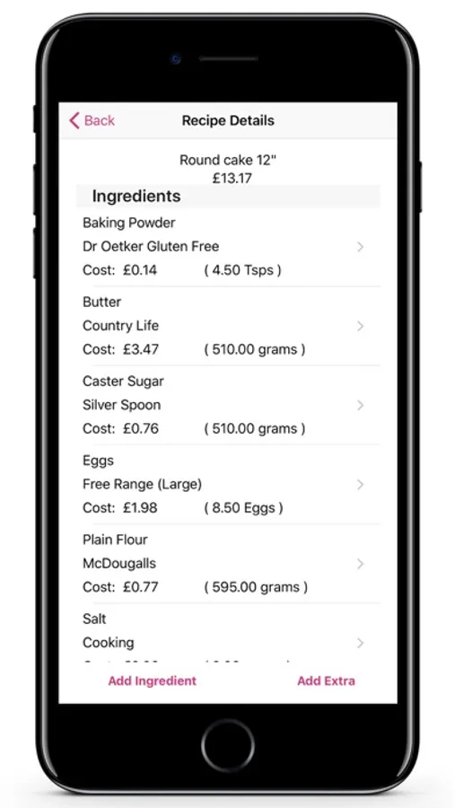 * Cost a Cake Pro is really easy to use, add and edit your ingredients and recipes in a few clicks, swipe left or right to delete anything. Designed with ease of use, speed and simplicity in mind.