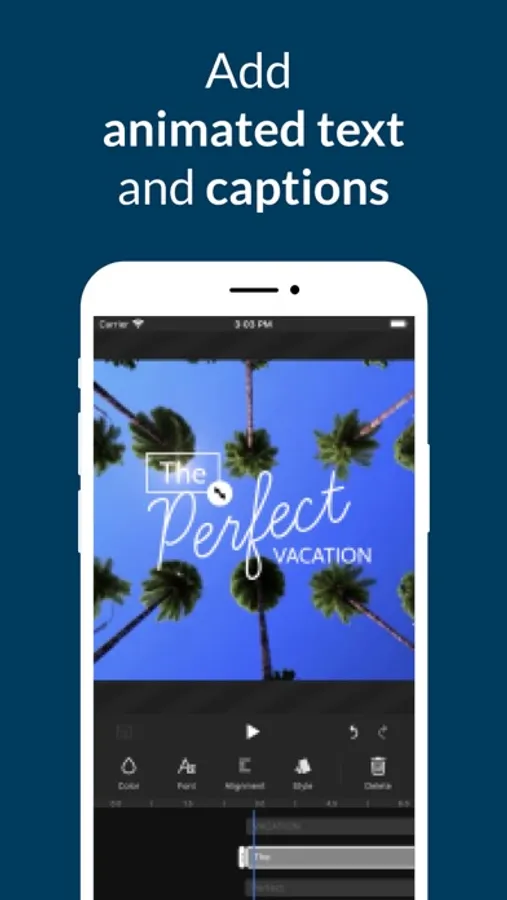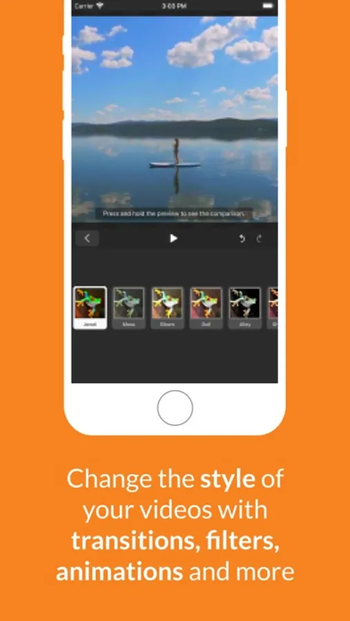 • Change the style of your videos with transitions, filters, animations and more
