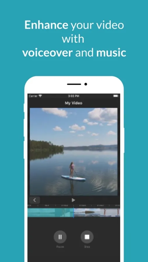 • Enhance your video with voiceover and music tracks