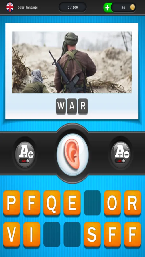And once you get really stuck, then I'll display a picture as a clue, remove letters falsely placed or place searched letters corrrectly.