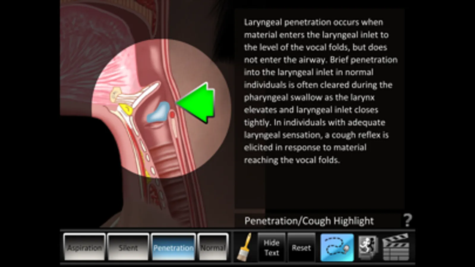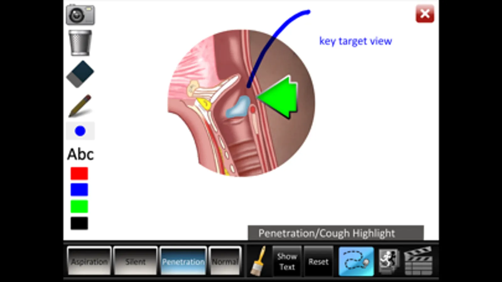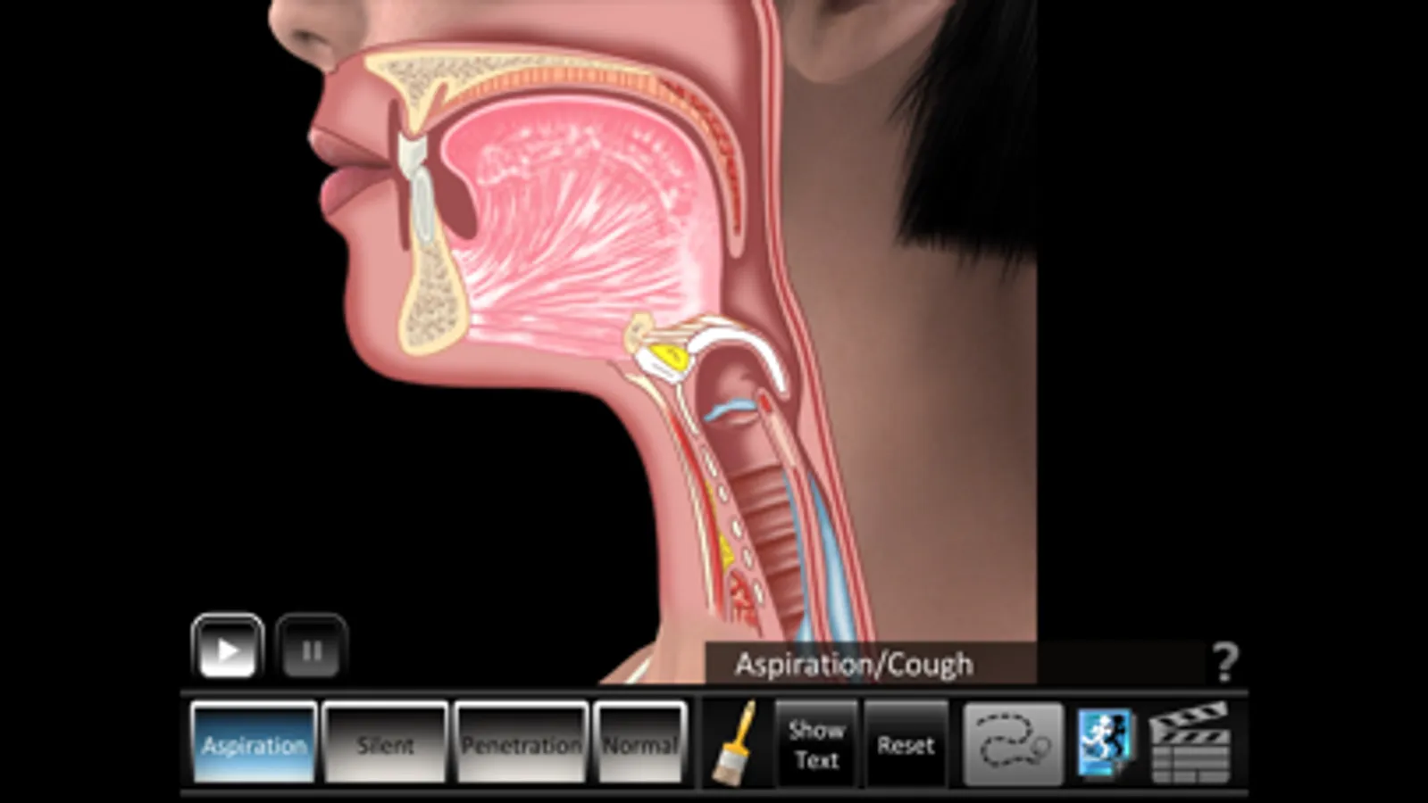 The Aspiration Disorders app helps students and patients learn and professionals teach aspiration swallowing disorders. The app features normal, aspiration, silent and penetration/cough views. Animated anatomical illustrations, key disorder highlight and a MBS and FEES video for each view help patients and students learn.