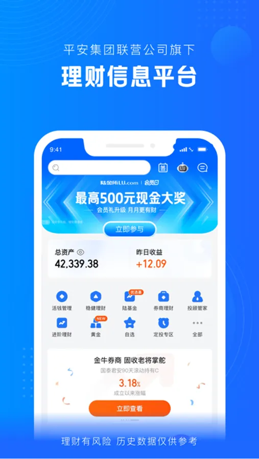 【陆金所】平安集团联营公司旗下理财、融资信息平台,在健全的风险管控体系基础上,为客户提供精准智能的理财、融资信息服务。陆金所多样化的理财产品满足用户财富管理需求: 活钱管理、稳健理财、收益进阶、保险保障、高端理财等。