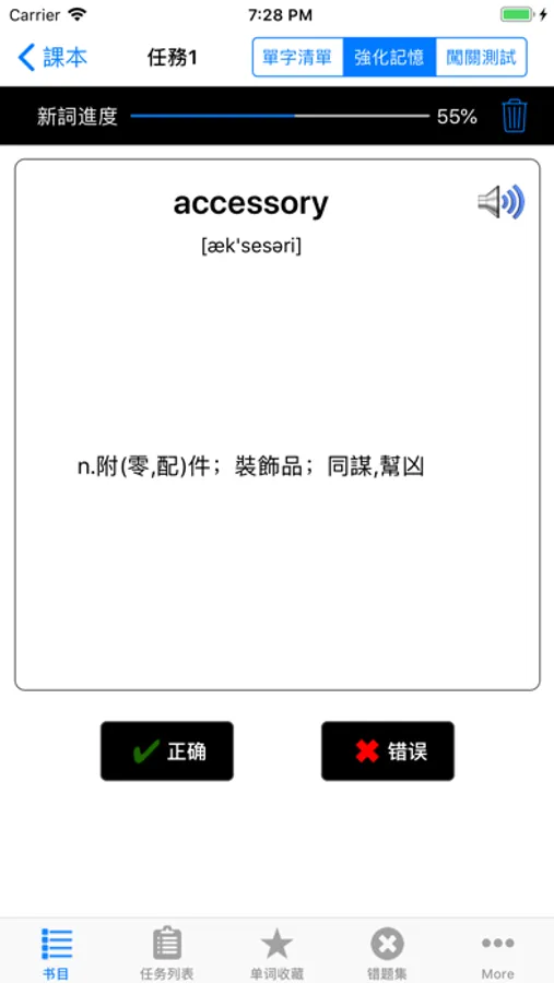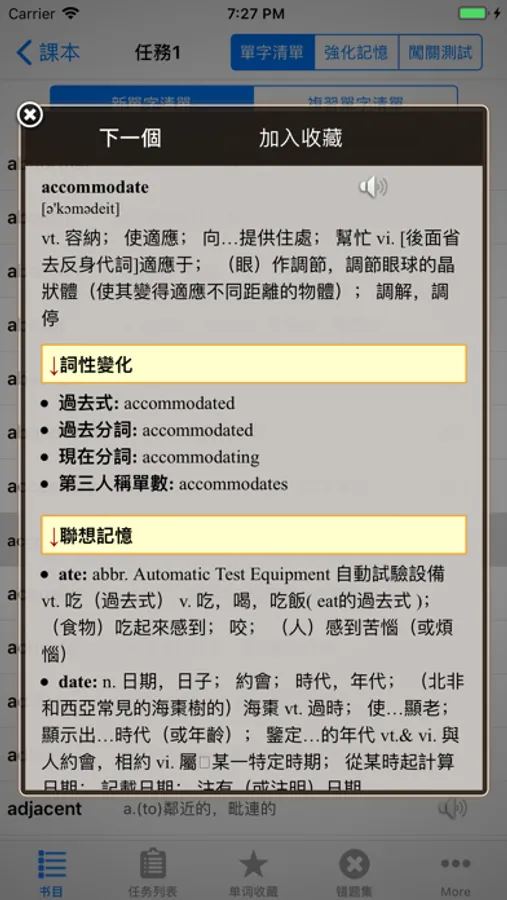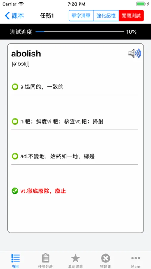 6、提供单词收藏以及测试错题库等功能, 简便易用实用!