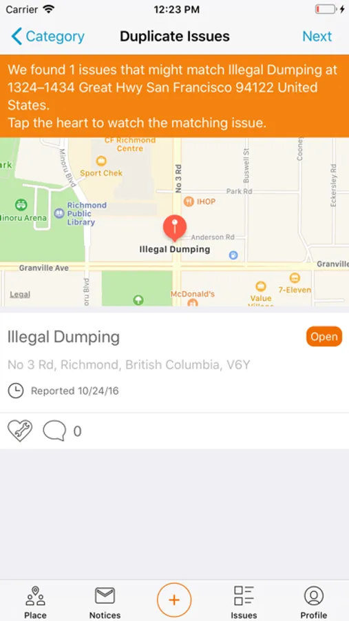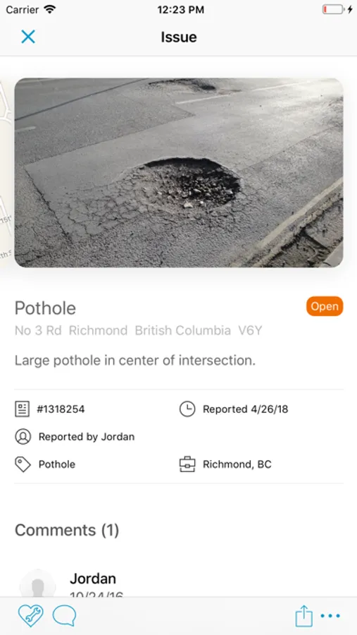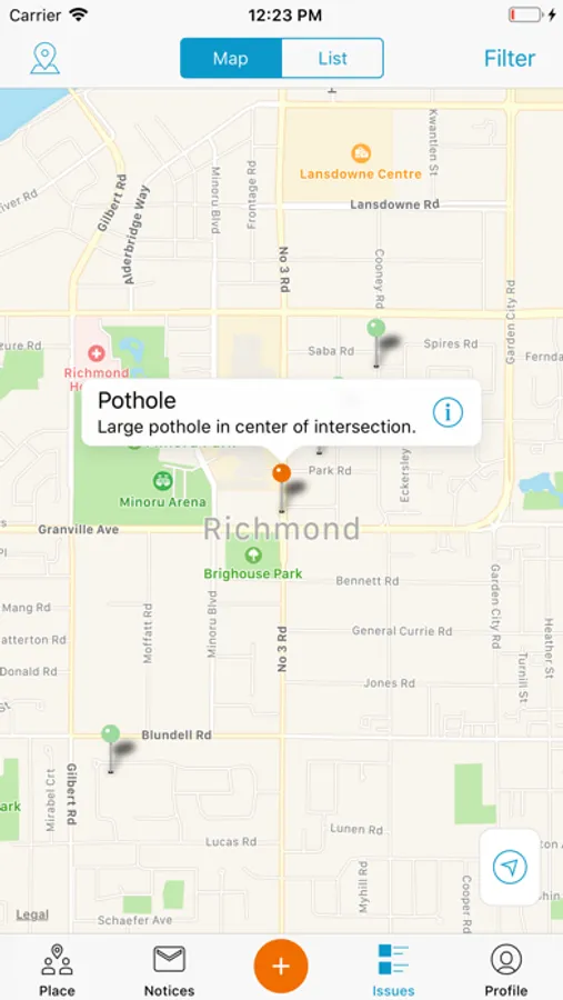 The Richmond Works free mobile app is the easiest way to report non-emergency issues such as a pothole, broken streetlight, damaged street signs or graffiti while on the go in Richmond, B.C., Canada! Your service requests are automatically sent to the City’s Public Works Service Centre and directed to appropriate City departments for resolution. You will be able to check the status of your service request until the issue is resolved. This app uses global positioning system (GPS) to identify your location while allowing you to take a photo of the issue.