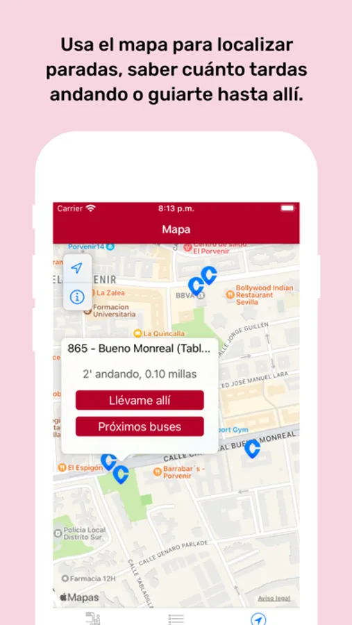 Con Rapibus podrás además guardar tus paradas favoritas y poder consultar lo que le queda a tu autobús de la forma más rápida y sencilla.