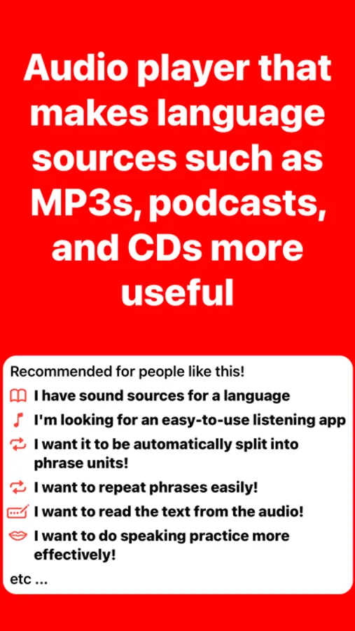 Since the major update in 2022, many users in Japan, Korea, Taiwan, Europe, North America, and other countries have called it the best language audio player ever.
