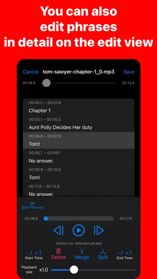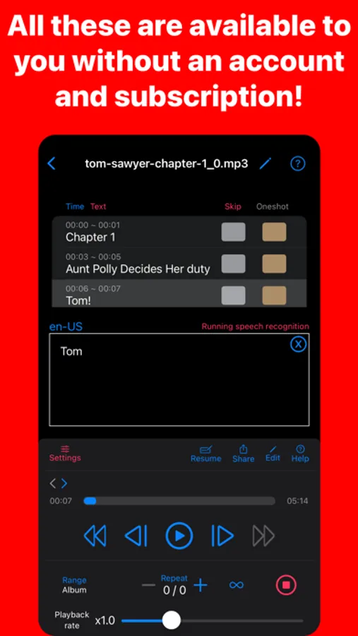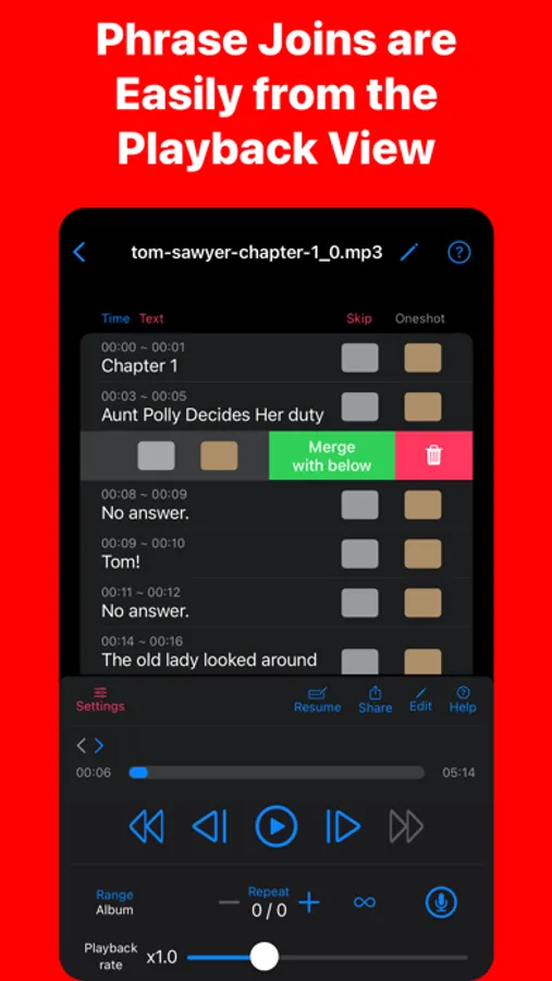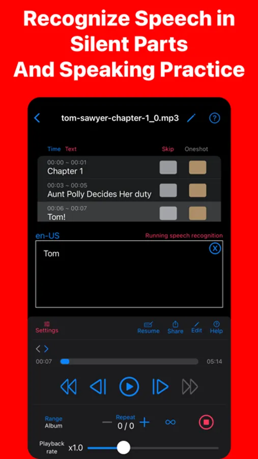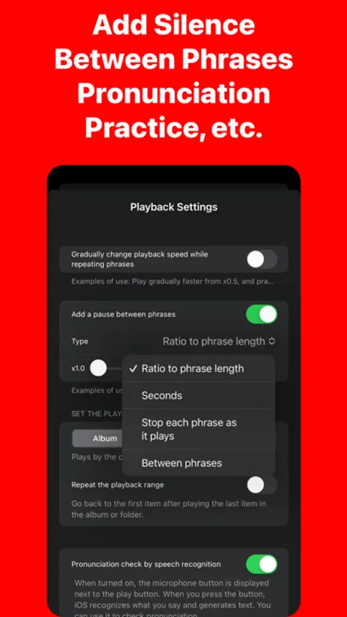 2. phrase repeat playback and 0.5~2.5x speed adjustment
