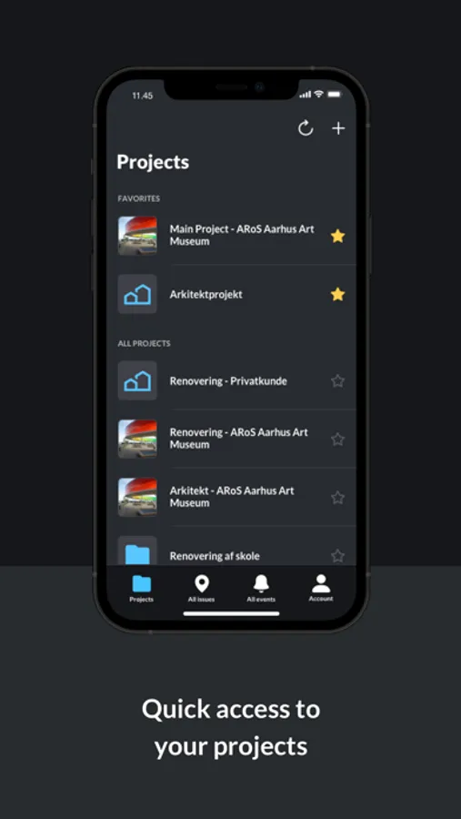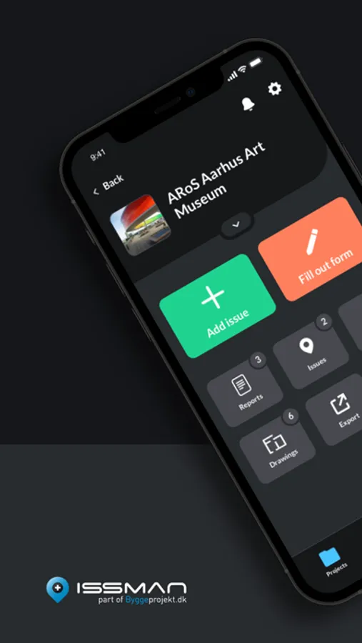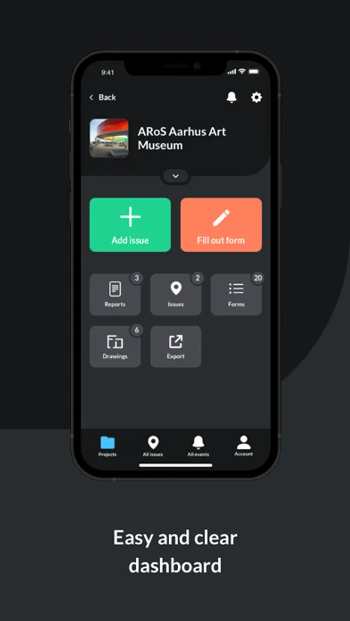 ISSUES: Add an issue from your device when you spot it. Issues contain all the information you need to identify a defect, safety issues or for photo documentation.
