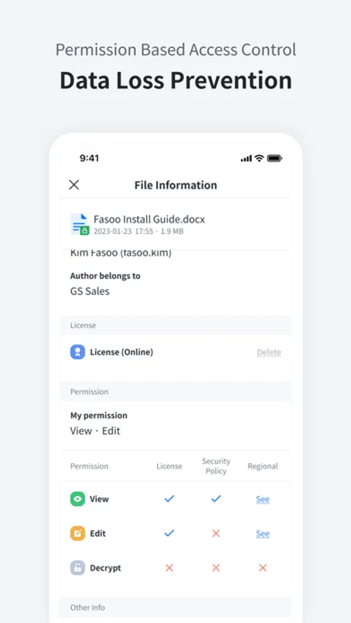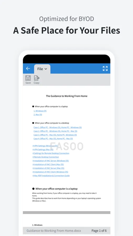 Fasoo View Plus allows users to safely and securely view and edit their documents as they do on their PC through their mobile device.
