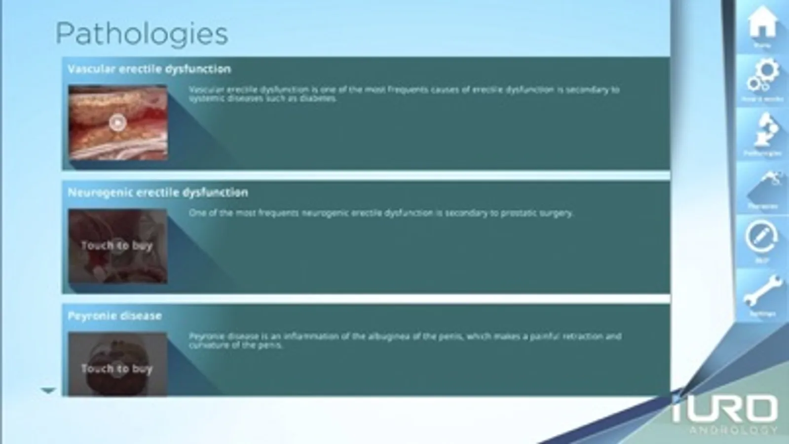 iURO Andrology is the must-have app for all andrology healthcare professionals and students. The narrated simulation videos make it easy to understand and explain the different pathologies and therapies. It can be used by doctors and nurses to enhance communication with their patients. Medical students can use iURO apps to increase their knowledge and understanding of various urological topics.