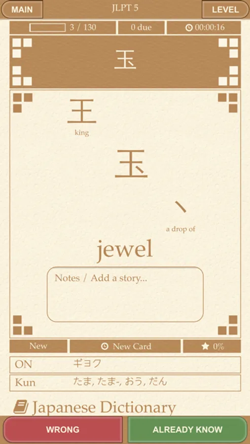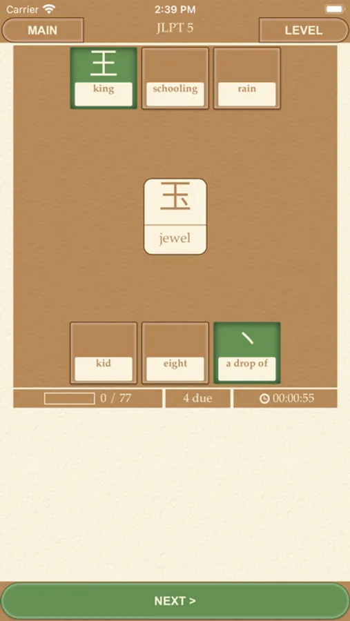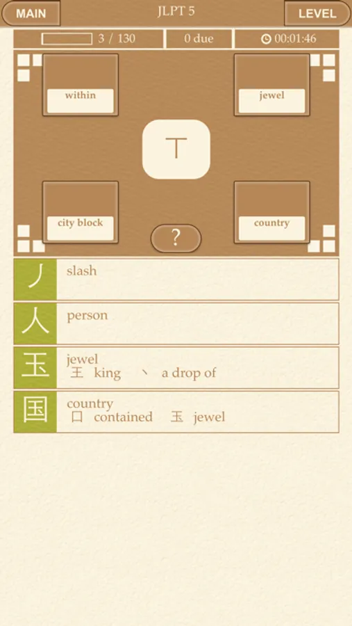 - 7 kanji games: Kanji Flashcards, Kanji Multiple Choice, Kanji Scrabble, Kanji Tiles, Kanji Matchup, Kanji Blockfall Keywords, Kanji Blockfall Primitives.