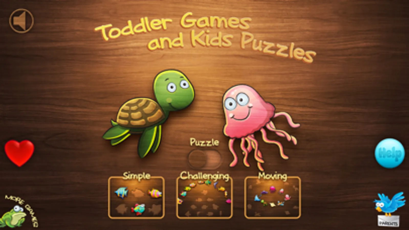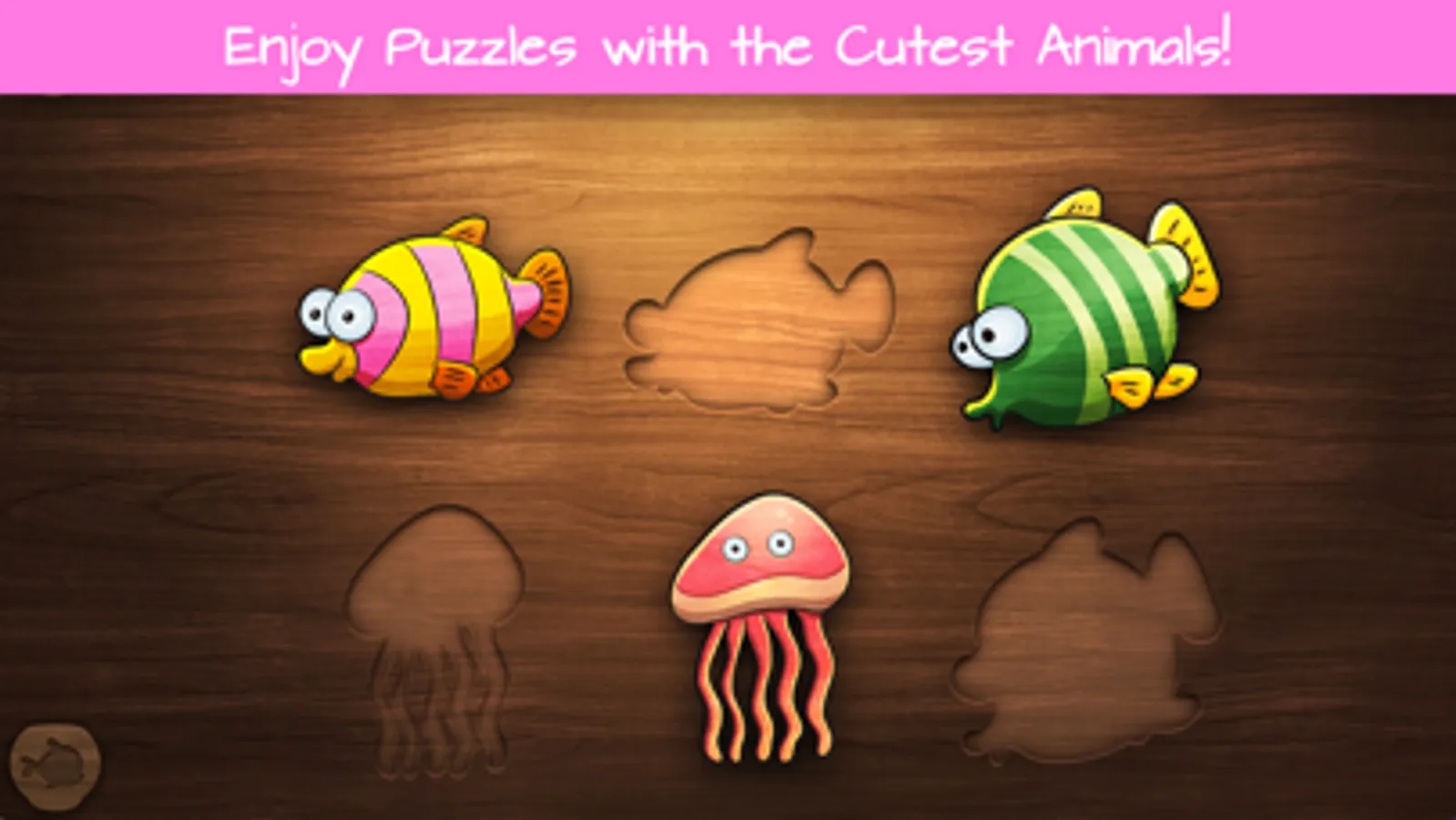 Polished underwater puzzle activities for toddlers and kids! Large wooden puzzle pieces, exotic underwater marine animals, and vibrant colours make it perfect for young kids and toddlers. There are three difficulty levels and a tropical aquarium that can be filled with fish and other sea animals. Puzzle activities are carried out with encouraging and rewarding manner. Kids earn aquarium fish as a reward every time they complete a puzzle. There are 46 different fish/sea animals to be earned. Toddler Games and Kids Puzzles is designed from the ground up for one, two, and three year old kids.