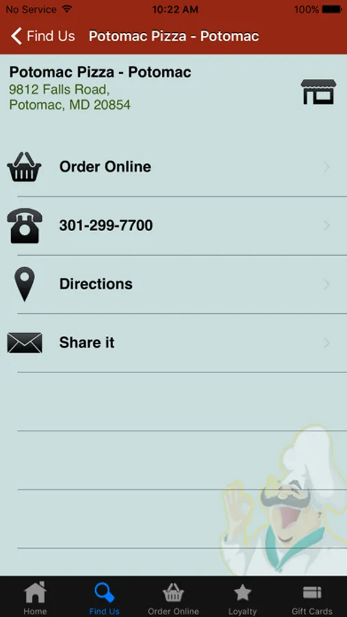 Tell us your experience about the app by clicking here: http://www.potomacpizza.com/