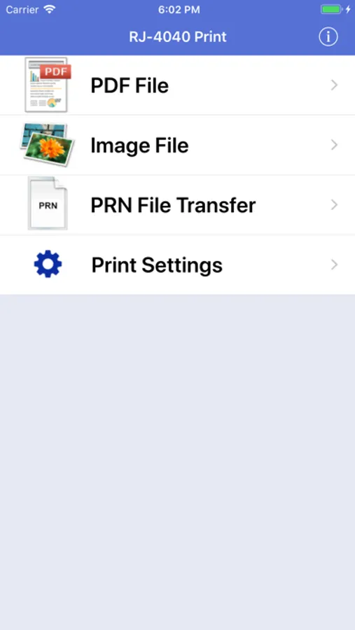 "RJ-4040 Print" is a FREE application that enables you to print to Brother Mobile Printers. This application prints PDF, Image (such as JPEG, BMP, GIF, PNG, and TIFF) and PRN files from your iOS device (iPhone® / iPad® / iPod Touch®) to your Brother Mobile Printer. Connect your iOS device to your printer using a Wi-Fi or MFi Bluetooth connection only. You MUST use "iTunes® File Sharing" or "Share" files from another app ("Open In", "Copy To") to add PDF, Image, and PRN file documents into the app for printing.