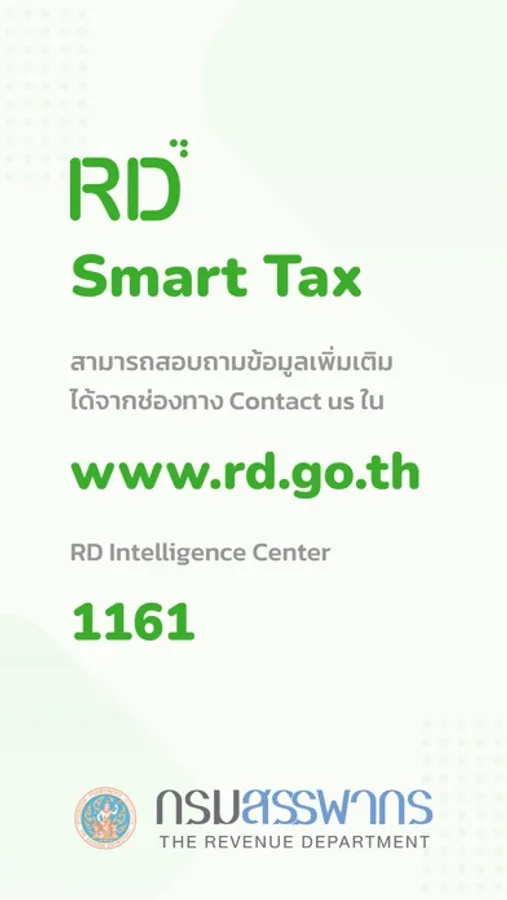 สามารถสอบถามข้อมูลเพิ่มเติมได้จาก ช่องทาง Contact us ใน www.rd.go.th หรือ RD Intelligence Center โทร 1161