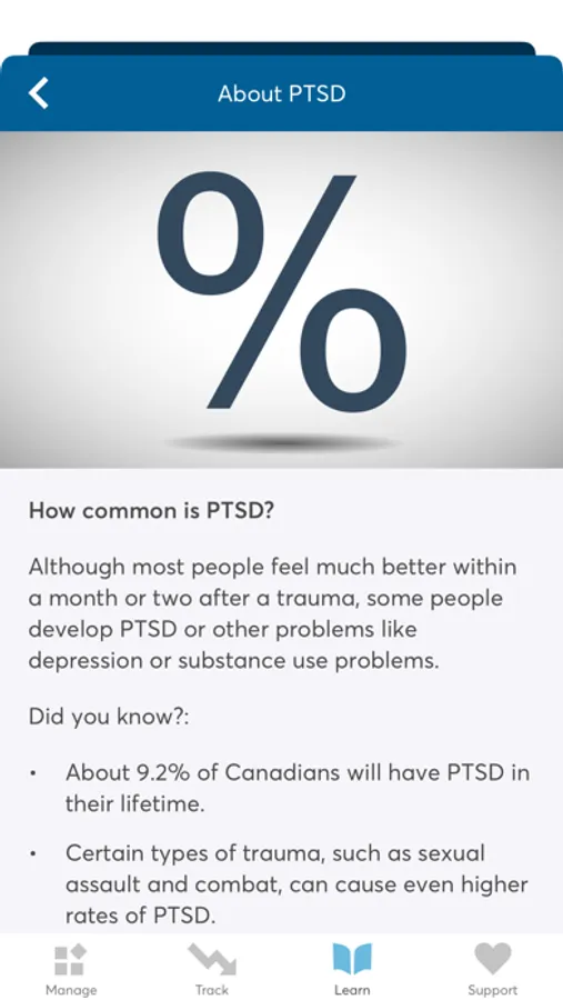 The PTSD Coach Canada app can help you learn about and manage symptoms that can occur after trauma.