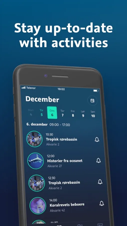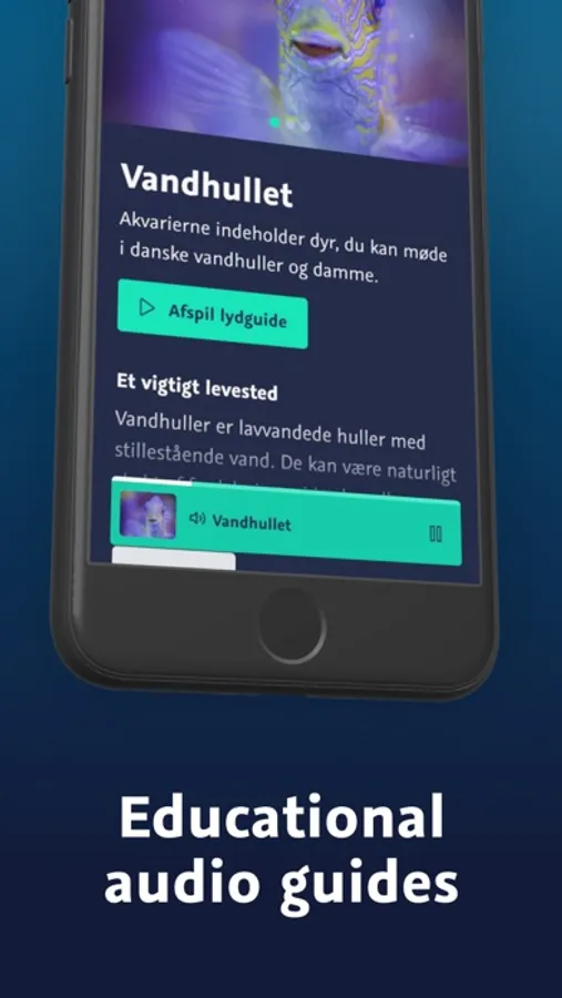 With the National Aquarium Denmark app you delve down under the surface and into the world of the fish. You’ll find interesting information about all the animals that live in Denmark’s biggest aquarium and about the different aquarium habitats they live in. Did you know for instance that sea snakes are amongst the most venomous of snakes and far more so than a cobra?