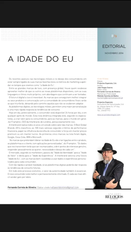 A marca Anuário Relógios & Canetas está disponível, em versão mensal, grátis, no seu site, na Internet, e nas aplicações iPhone e iPad. É a primeira vez que, no mercado nacional, existe um mensário dedicado à Relojoaria, Joalharia, Instrumentos de Escrita e Luxo.