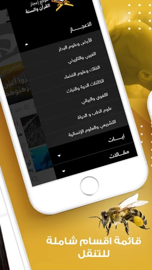 ويعرض تطبيق الإعجاز العلمي في القرآن (معجزات القرآن) هذه الموضوعات: