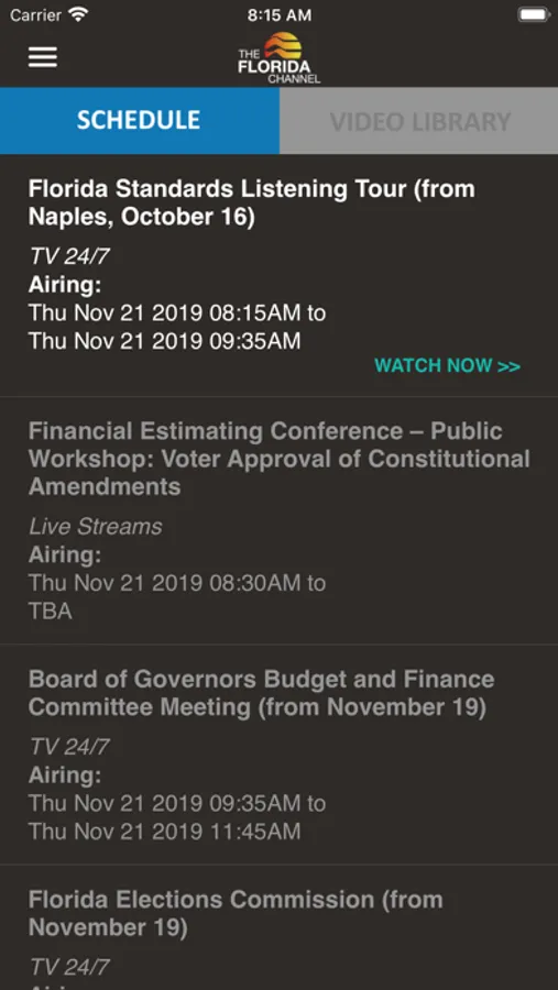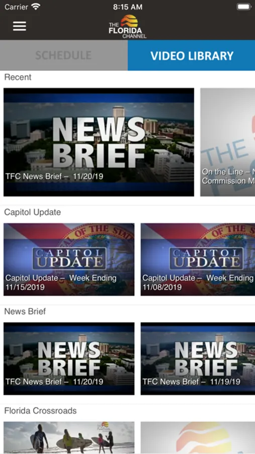 View a schedule of events and see updates in real-time. Watch LIVE events, gavel-to-gavel. Get access to TheFloridaChannel.org’s complete video archive, including programs like Capitol Update, Florida Face to Face, Florida Crossroads and News Brief.