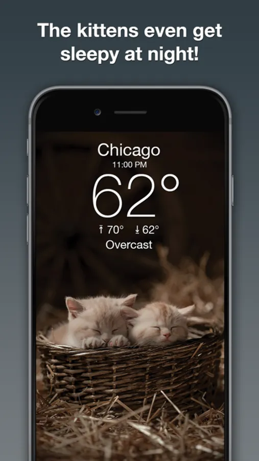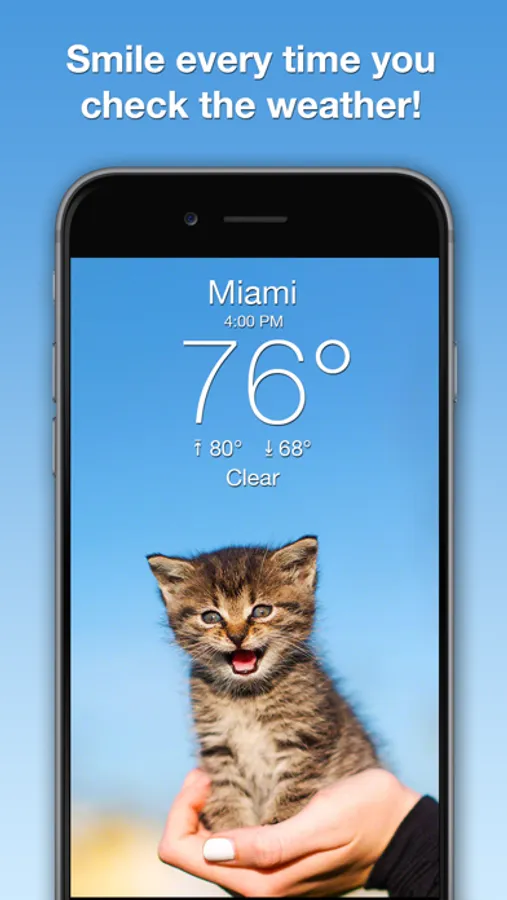 Smile every time you check the weather! The cats change based on the weather and time. You can even add your own kitty!
