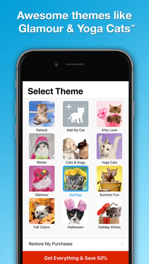 - Use photos of your cat to create your own theme (premium add-on)