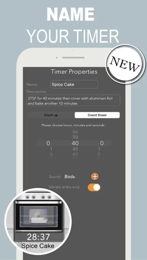 - Set an alarm or turn on the vibrate option to be reminded when a timer is done